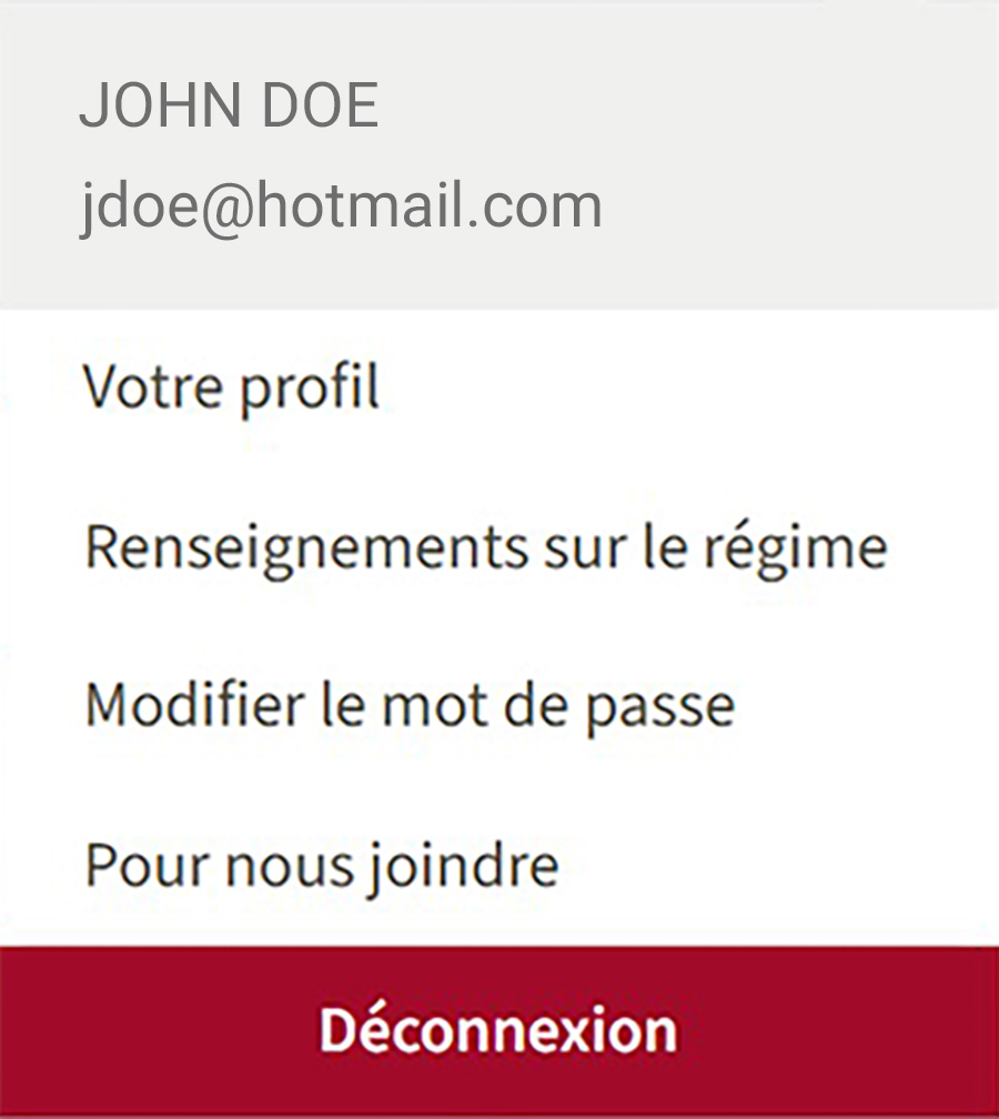 • Cliquez sur l’icône de profil dans le coin supérieur droit et sélectionnez Renseignements sur le régime dans le menu déroulant;